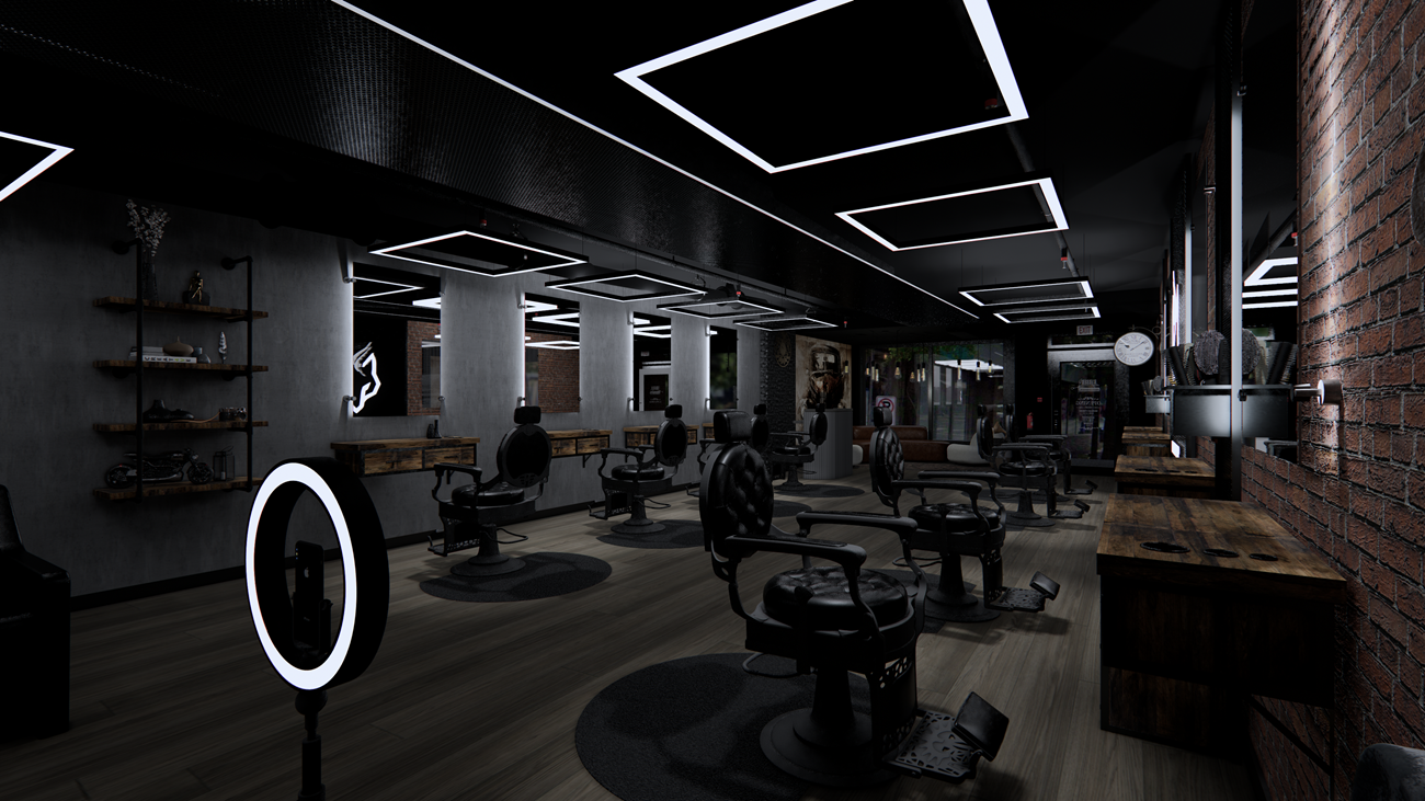 Arlington Barbershop, USA (Interior Design – 3D Modeling – Rendering)